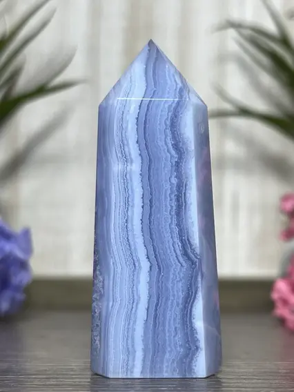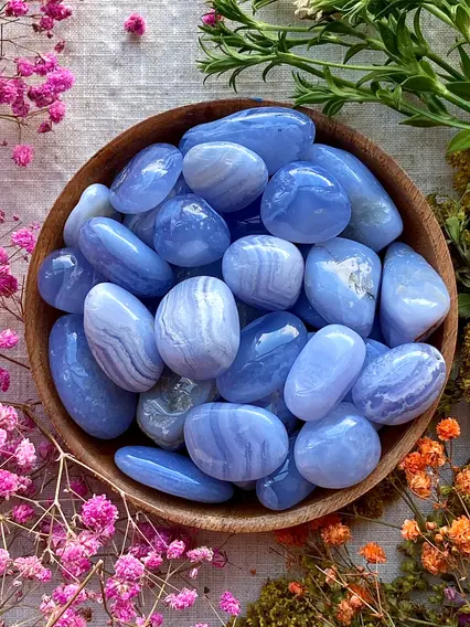 Blue Lace Agate increases your confidence which can aid in communicating your thoughts and ideas. It enhances clarity to help you distinguish between thoughts and emotions.